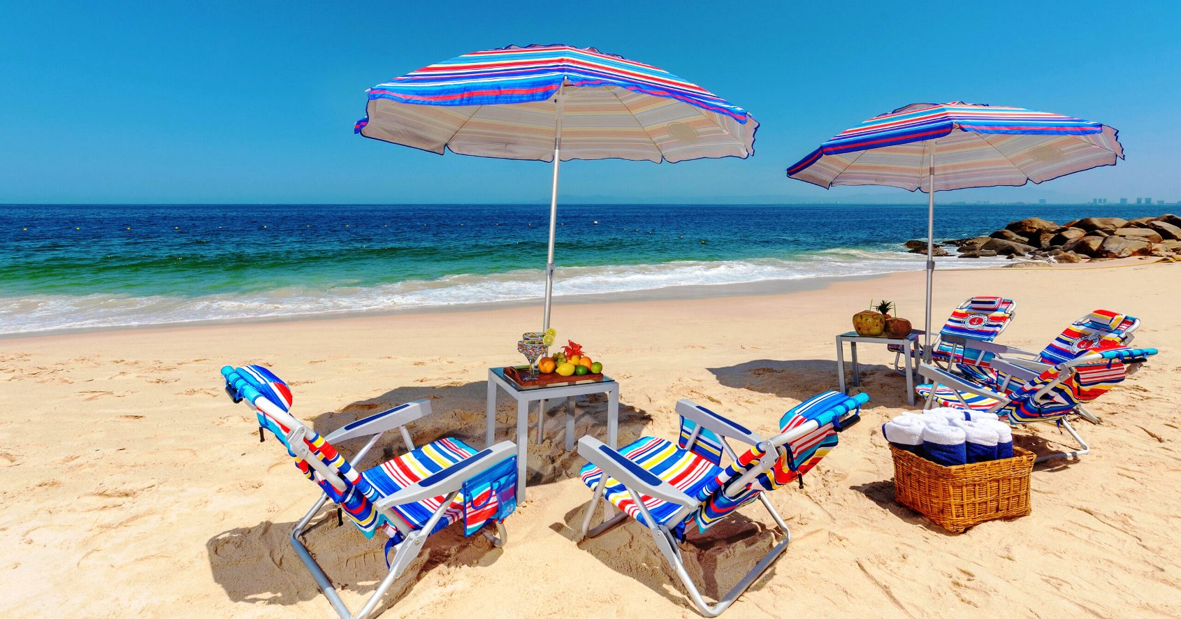 • Beach chairs and Umbrellas