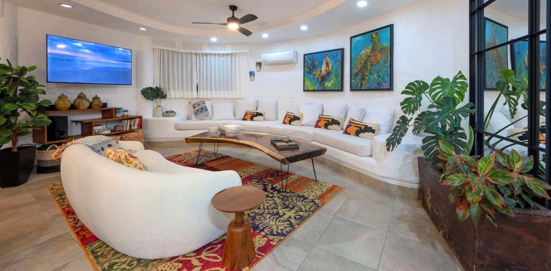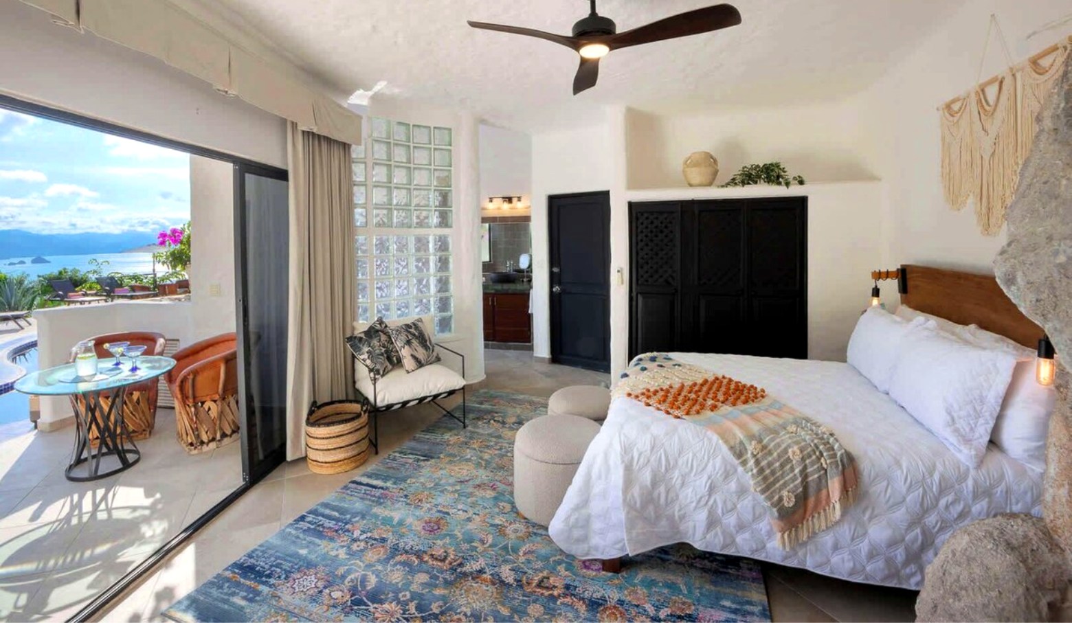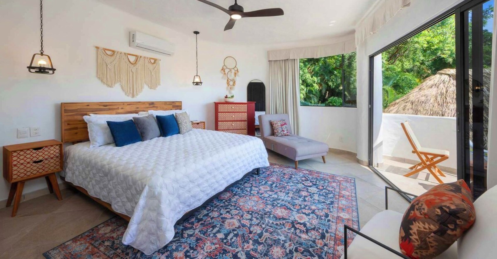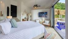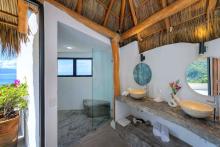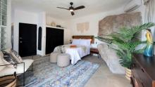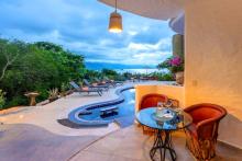Villa Viaje’s centerpiece is its open-air palapa, seamlessly connecting the living and dining areas to the sunlit pool terrace, complete with lounge chairs and shaded spaces for relaxation. A private cook prepares two daily meals plus snacks, supported by a dedicated waiter/houseman and daily housekeeping, ensuring every detail is taken care of. Whether entertaining guests, enjoying quiet moments on one of several balconies or floating in the pool while watching the horizon, Villa Viaje offers effortless luxury, comfort, and unforgettable vistas.