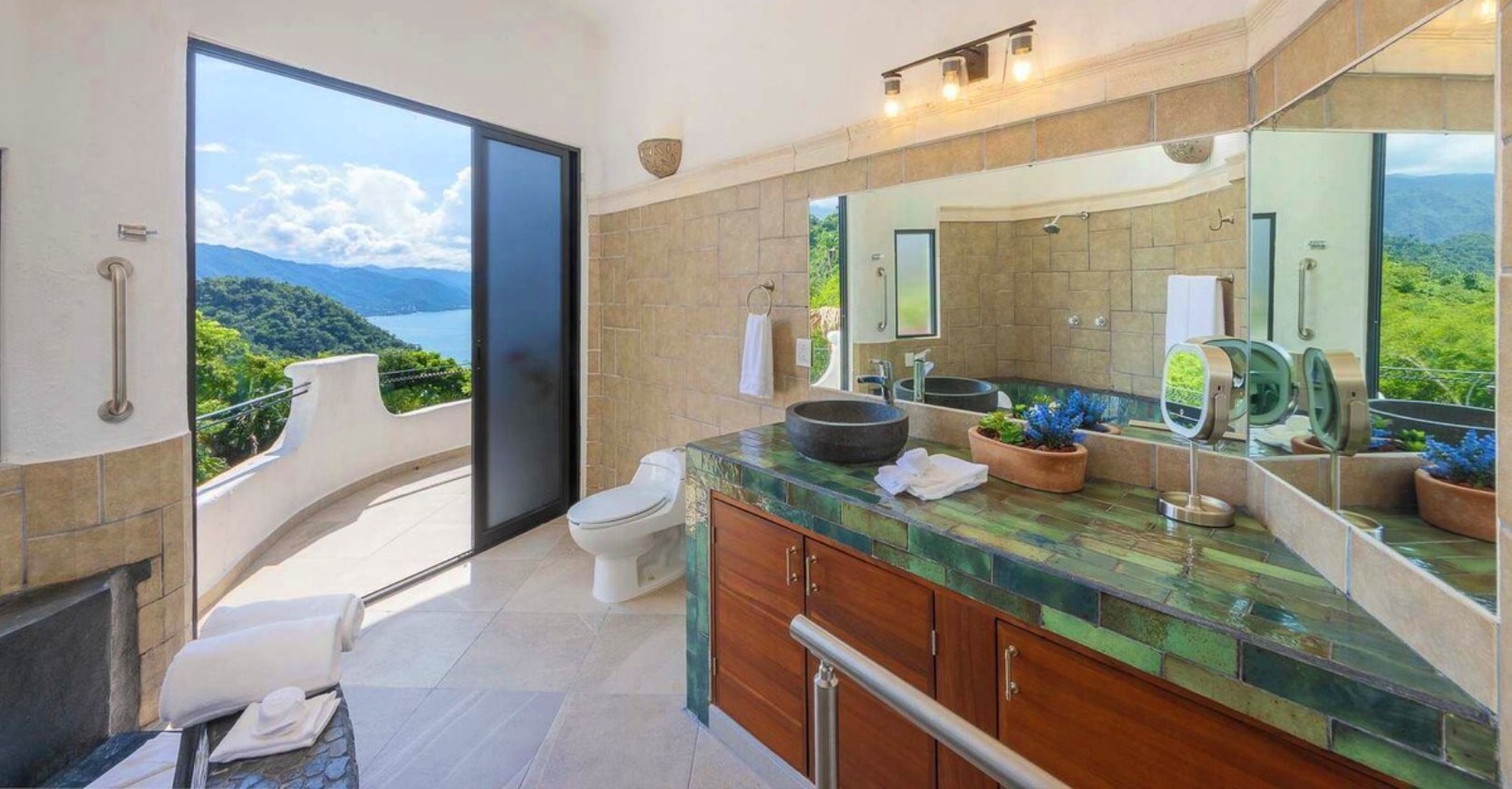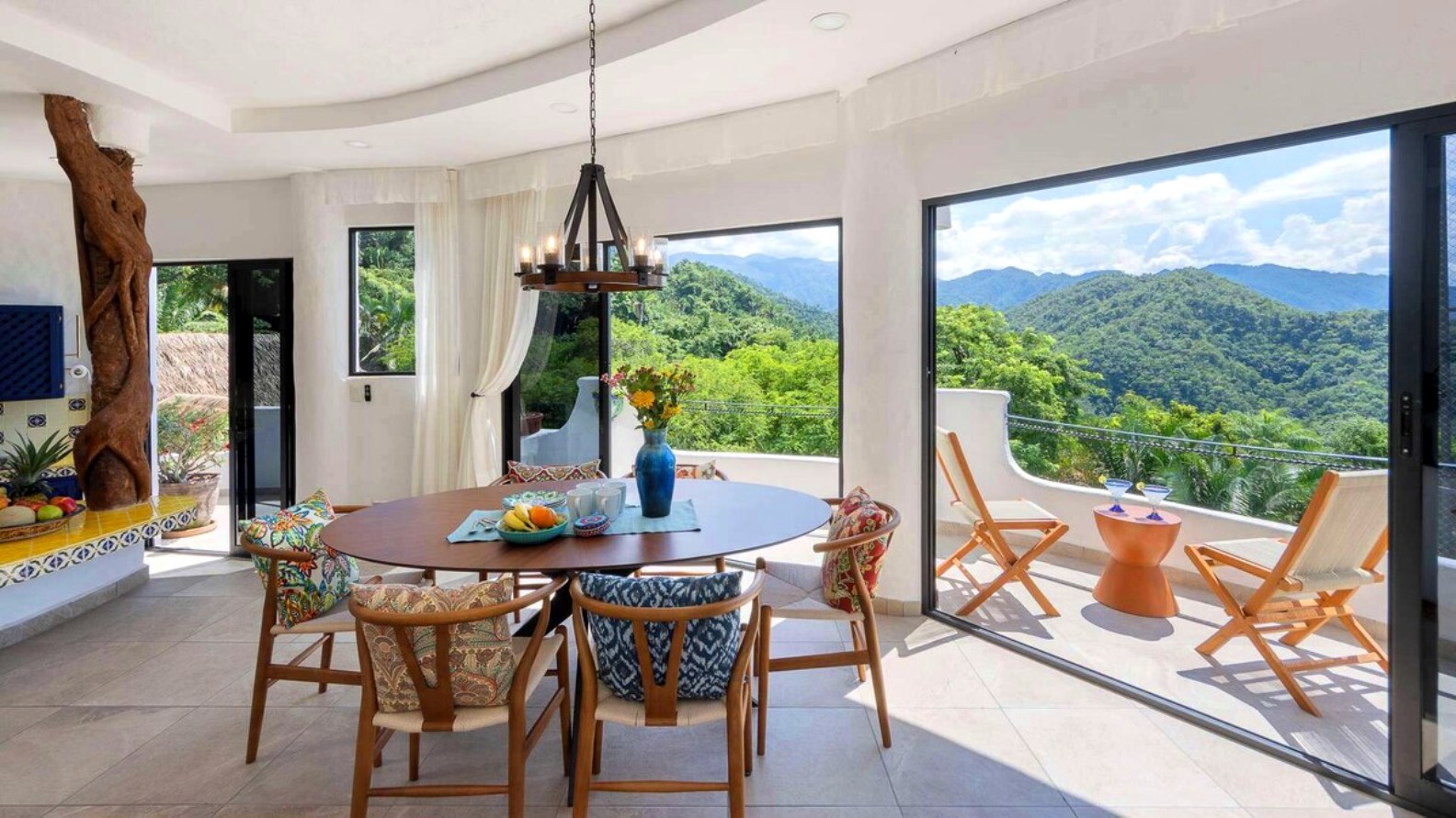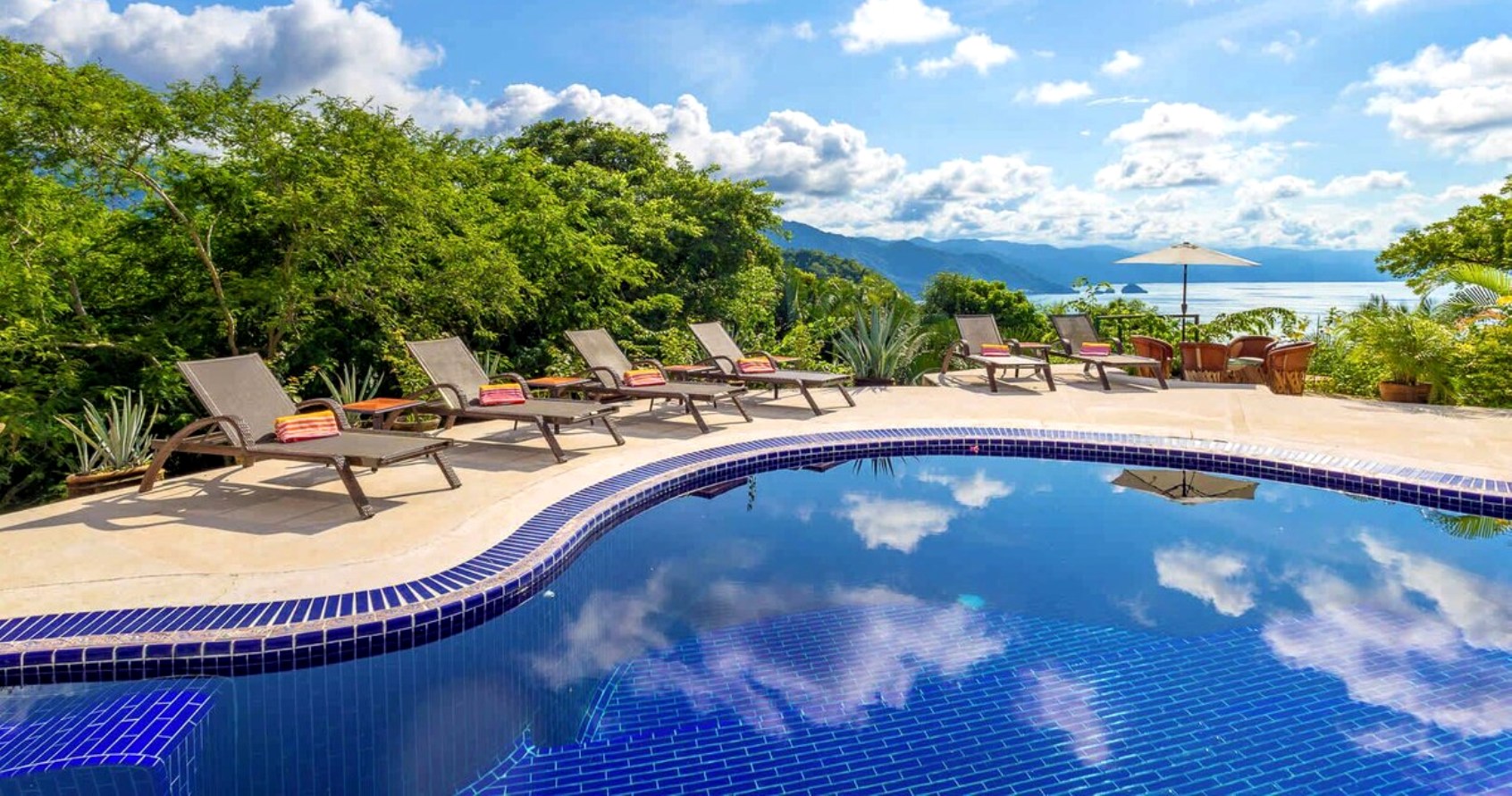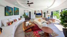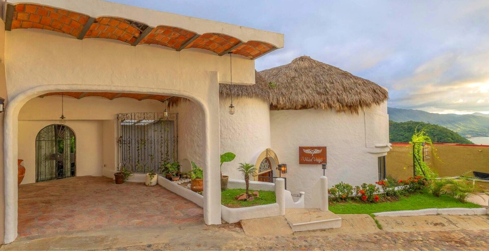 Perched on the hillside of upper Conchas Chinas, just minutes from downtown Puerto Vallarta, Villa Viaje is a luxurious retreat where contemporary design meets tropical charm. Spanning approximately 5,800 sq ft, the villa features five spacious bedrooms and five-and-a-half bathrooms, offering both inviting communal spaces and private retreats. From nearly every room, guests are treated to sweeping views of the Pacific Ocean and the Sierra Madre Mountains, creating a serene and picturesque backdrop for your stay.